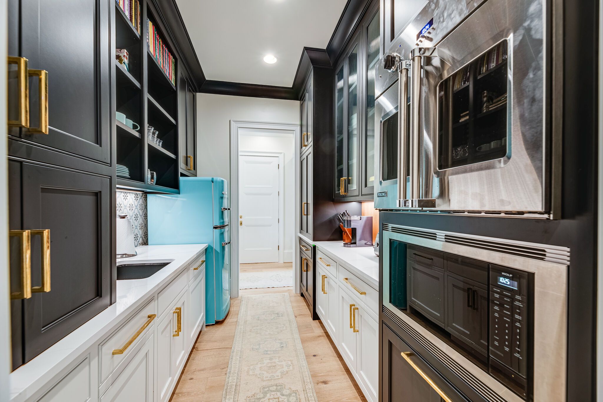 On the second level, two bedrooms are set up on either side of a fun study nook, and each have full baths and walk in closets. The study is at the top of the stairs and just outside of the elevator for privacy and easy accessibility, with a powder room close by. A future space is ready for extra storage or an optional fifth bedroom and full bath.