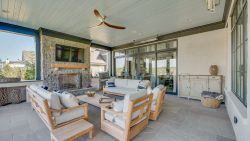 Double doors open from the covered front porch into the foyer, showing off the open concept kitchen and family room beyond. The dining room and butler’s pantry are both open to the foyer, creating an easy flow for serving and dining. The spacious butler’s pantry has a wine cooler, sink, and extra counter space. The large kitchen island overlooks the breakfast area and the family room fireplace. A keeping room off of the kitchen is surrounded by windows and is the perfect spot to relax before a busy day, enjoying a cup of coffee while taking in the backyard views. The working pantry, or scullery, allows for out-of-the-way food preparation and storage, with a refrigerator, sink, double oven, and dishwasher. An enclosed pantry provides space for additional food and necessities storage. Through sliding doors in the family room, the spacious covered porch has a fireplace and ample room for two distinct seating areas. The primary bedroom sits at the rear of the home with expansive windows and access to the covered porch. Three sinks, a curbless walk in shower, a 6-foot soaking tub, and two private toilets create a spa like primary bath. Impressive his and hers closets finish the suite. Conveniently close to entry from both the two-car garage and the side porch are a mud bench, built-in desk, and powder room. The laundry room features a dog shower, and is accessible from the one-car garage. In the front of the home, a second bedroom has a private full bath and walk-in closet. The coat closet and elevator off of the foyer complete this space.