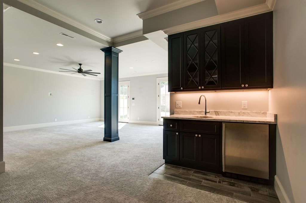 From the entry foyer, stairs go down to the basement or up to an open-railed balcony overlooking the family room below. Three upstairs bedrooms each have their own full bathroom and walk in closet. The separate upstairs space over the four-car garage is home to a large bonus room, a full bathroom, and a perfectly private sixth bedroom.