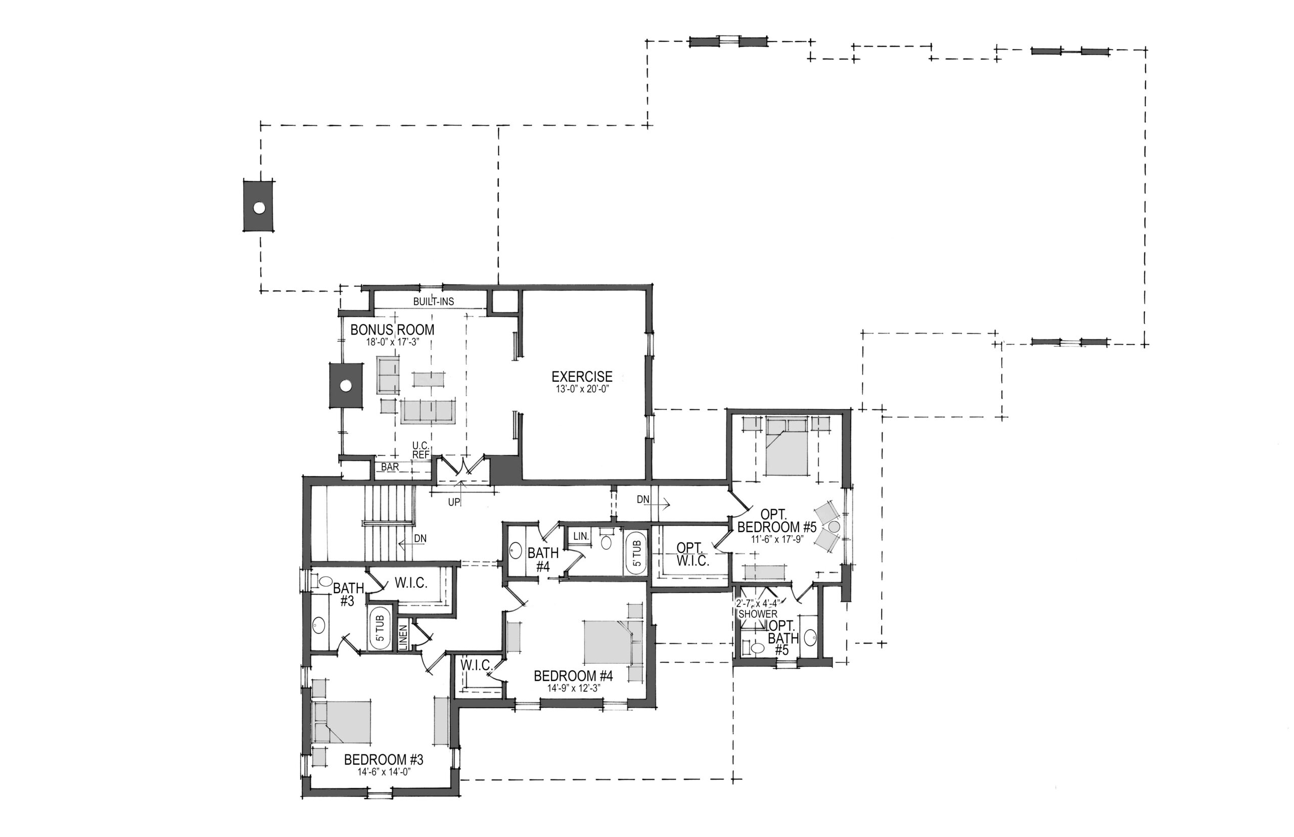 • Optional addition to the plan includes a second floor plan expansion with fifth bedroom and full bath over the two-car garage.