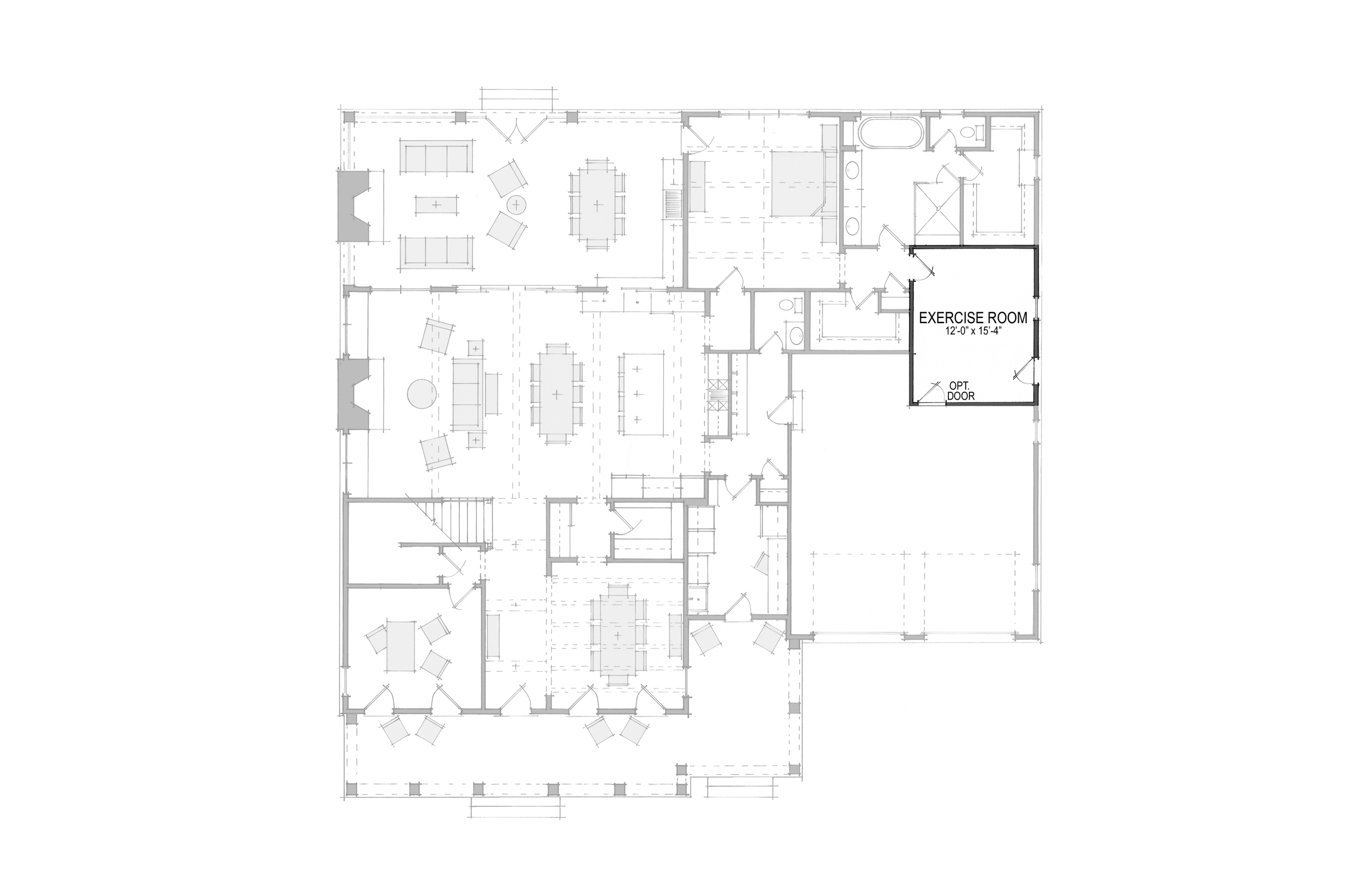 - Summertime Bungalow D + Exercise Room — The exercise room option includes a master-suite accessible exercise room in place of the 3rd garage bay. An additional exercise room entry can be added from the garage. The square footage increases to 3,314.