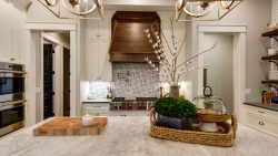 Inside, the spacious open concept kitchen boasts an expansive island and a butler’s pantry walk-through to the dining room. A study and convenient A/V storage area off the foyer add to the functionality of this beautiful home. A friend’s entry leads to the laundry area, mud bench, and powder room, and serves as a separate entry to the kitchen and pantry area. The main floor master suite boasts dual sinks, a tub and shower, and large his and hers closets. The second floor contains two bedrooms, each with their own full bathroom and walk-in closet, as well as easy access to an expansive walk-in storage area.
