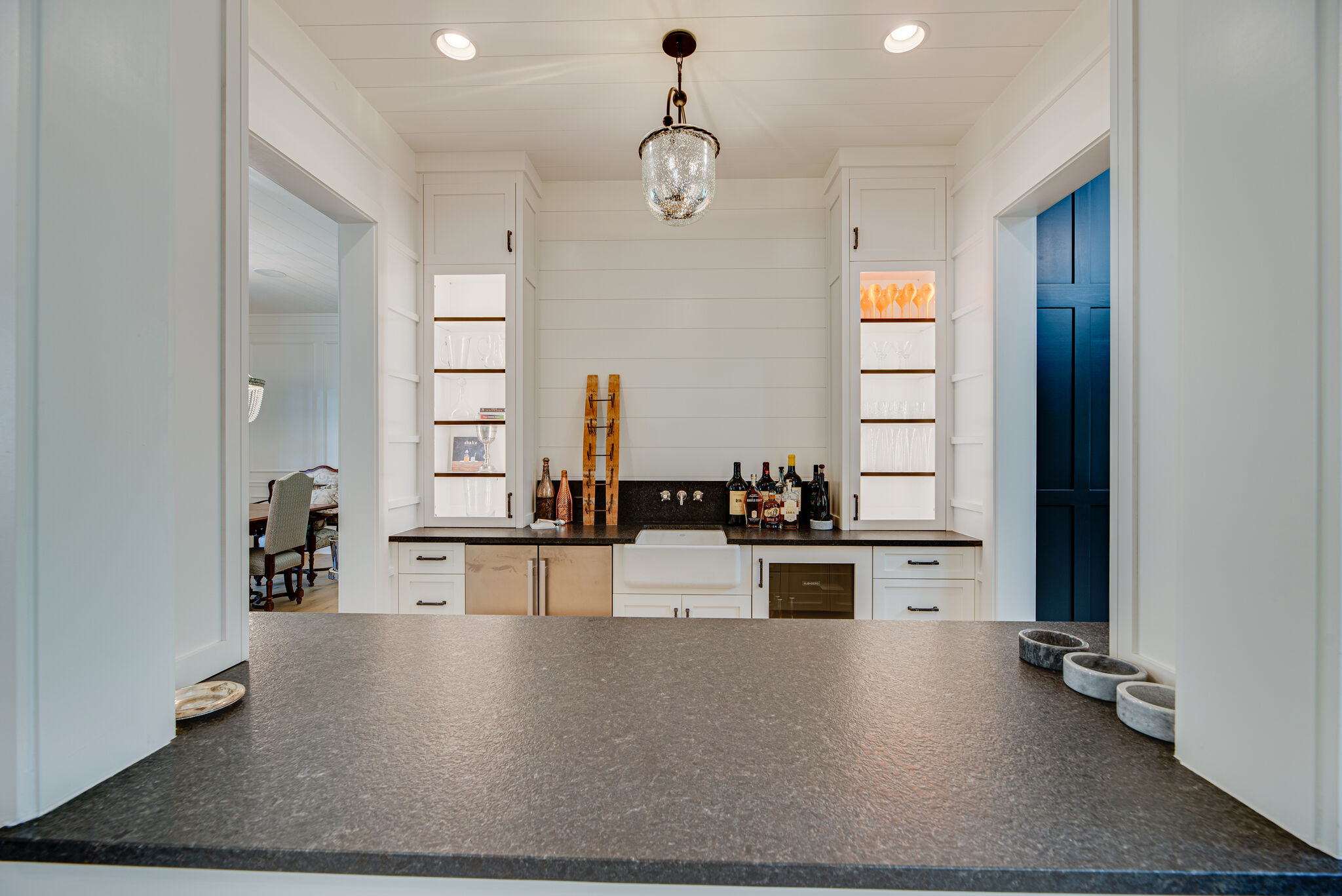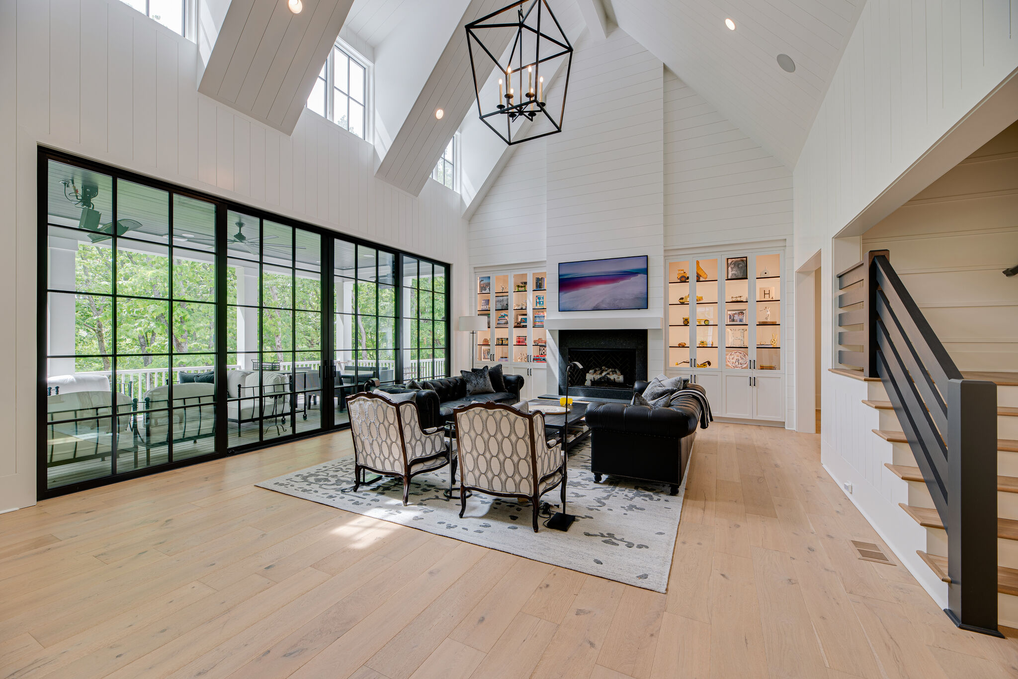 Downstairs, 12-foot ceilings and 10-foot doors and windows make this space feel nothing like a basement. The stairs and elevator open to a spacious rec room with extensive possibilities for entertainment and family fun. A fireplace with built ins creates a cozy spot to spend time with friends and family. Sliding doors open to the lower covered porch, with another fireplace and stairs up to the main level terrace. A private guest suite with a full bath provides visitors with their own area, making both long- and short-term guests feel welcome. Doubling as a safe room, the theater room takes advantage of interior walls for perfect lighting and sound control, with inside access to a walk in safe. A second home office sits in a quiet spot at the bottom of the stairs leading up to the garage. The exercise room, an additional full bath, and ample walk-in storage complete the basement of this well thought out design.